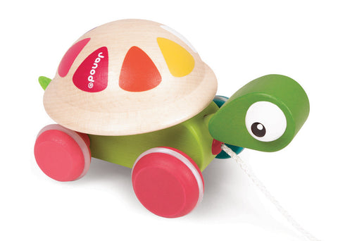 Pull Along Turtle gets so excited when you take him for a walk his shell spins! Water painted in true Janod styling he is crafted from FSC certified wood and has rubber grippers on his wheels for a smooth and quiet ride. Turtles are a popular pet but this one is loads more fun and can go anywhere!