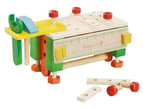 Your child learns through role-play, discovery and practicing what they have seen. Our wooden workbench includes bolts, hammers, wrench, saw, detachable parts and ruler to build dexterity and spatial awareness.